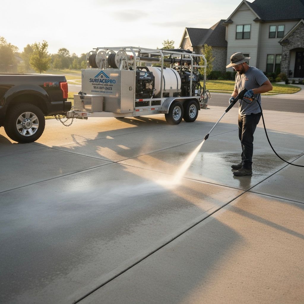 • Prevents Long-Term Damage: Removes corrosive contaminants (like oil and chemicals) and biological growth that can weaken the surface and lead to premature cracking or erosion.